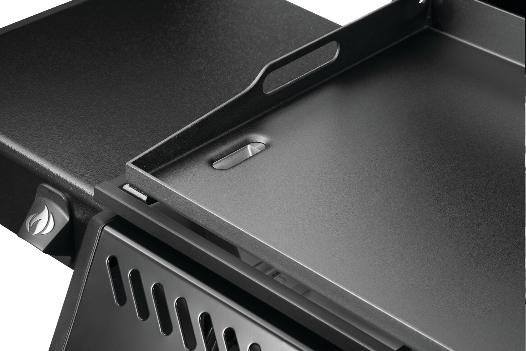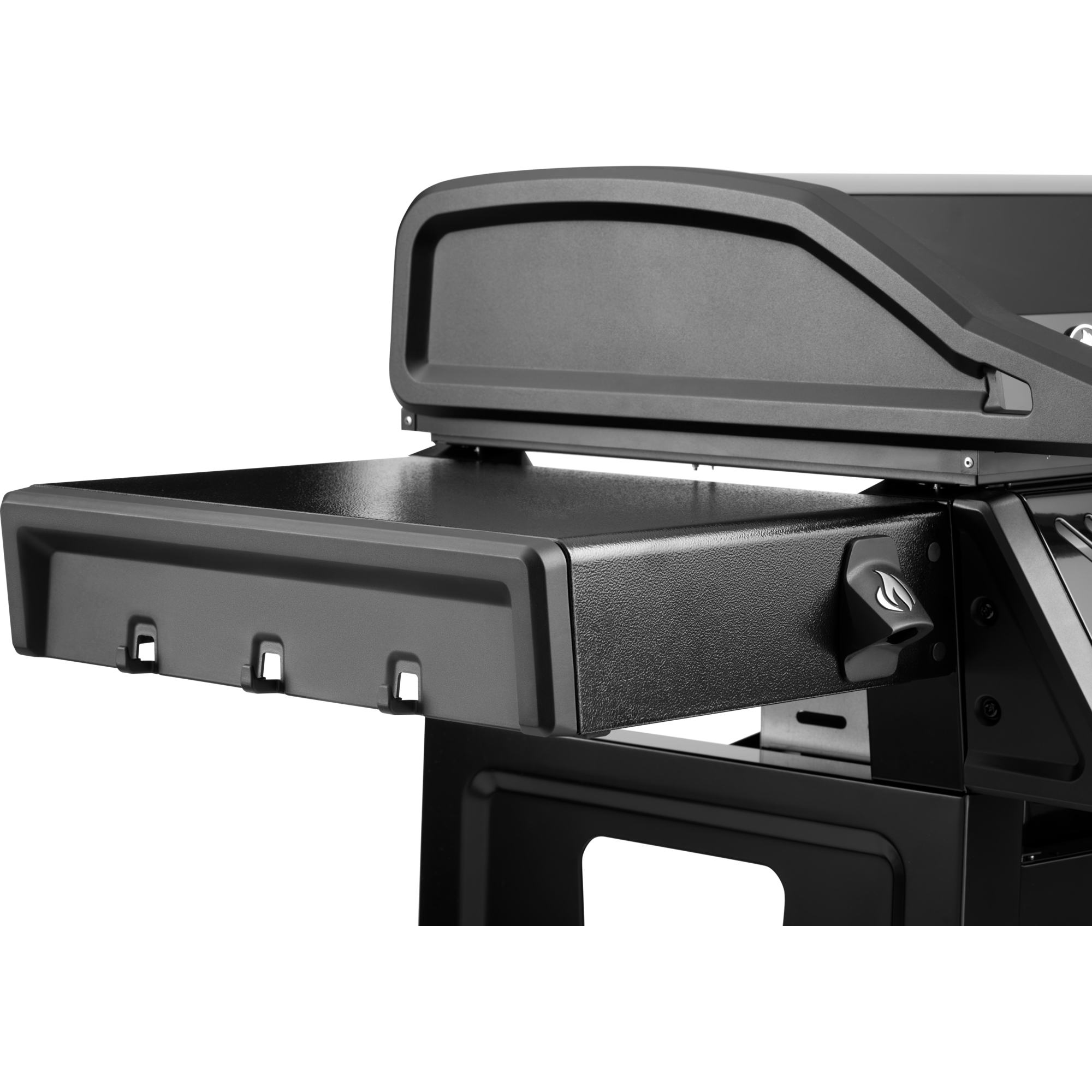Sklopné boční police s háčky na nářadí poskytují praktický úložný prostor, když zrovna negrilujete.