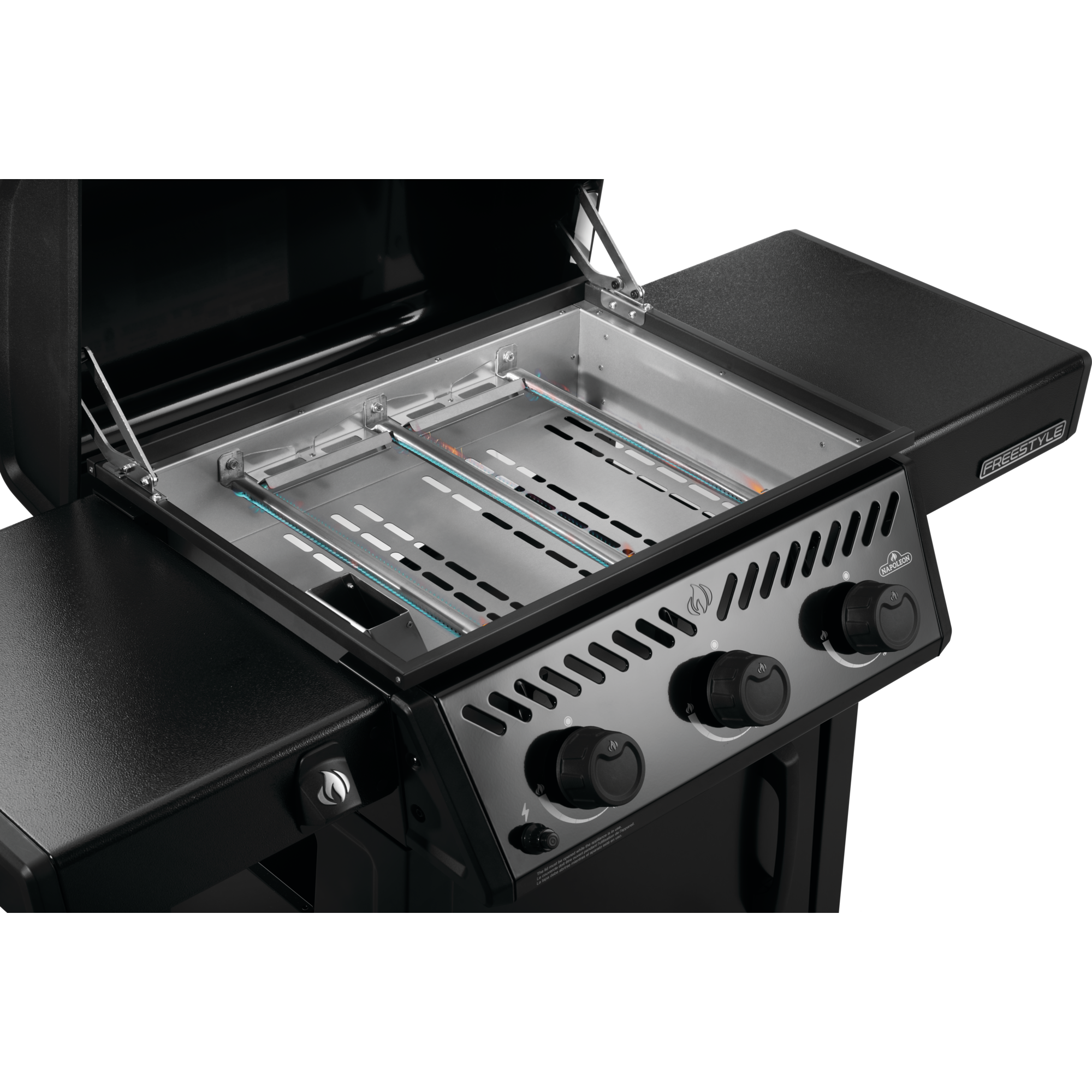 Tři výkonné hořáky s celkovým výkonem až 7,65 kW umožňují přesné ovládání teploty – od jemného restování po intenzivní opékání.