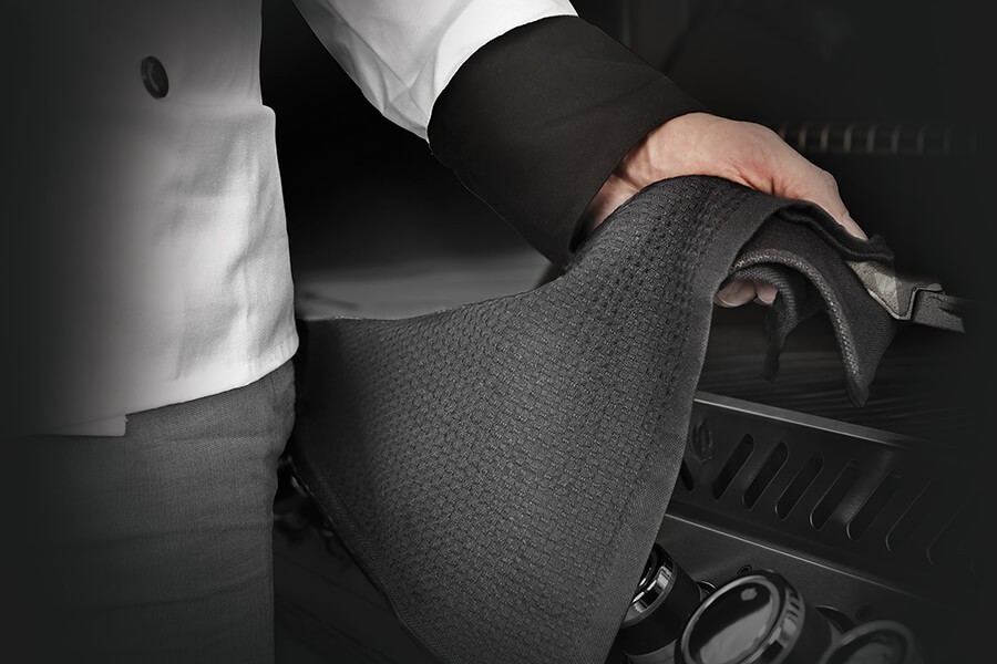 Praktická utěrka pro otření toho, co omylem vylijete nebo zpoceného čela při velkém grilování. Je vyrobena ze 100% bavlny, takže skvěle saje a nepouští vlákna. Vybavena jej praktickou kovovou karabinou pro zavěšení na háček nebo zástěru. Perte v pračce s podobně barevným prádlem, sušte v sušičce na mírnou teplotu. Velikost: 46 x 71 cm.