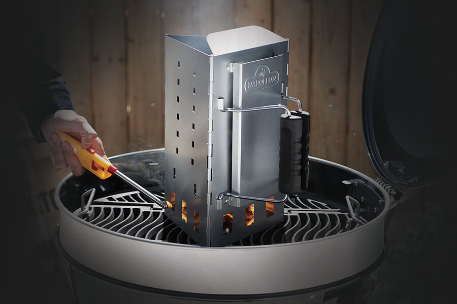 Pomocí našeho komínového startéru na dřevěné uhlí nebo brikety rozpálíte gril rychle, bezpečně a účinně. Startér je určen pouze pro venkovní použití a využívá komínový efekt pro rovnoměrné rozpálení celého svého obsahu. Při manipulaci doporučujeme používat žáruodolné rukavice. Použití je jednoduché, nejprve dejte do spodní části zmačkaný papír, poté otočte a naplňte hlavní komoru dřevěným uhlím nebo briketami. Pak pomocí otvorů podpalte papír. Ten zapálí spodní uhlíky a od nich postupně chytnou díky komínovému efektu i ostatní.