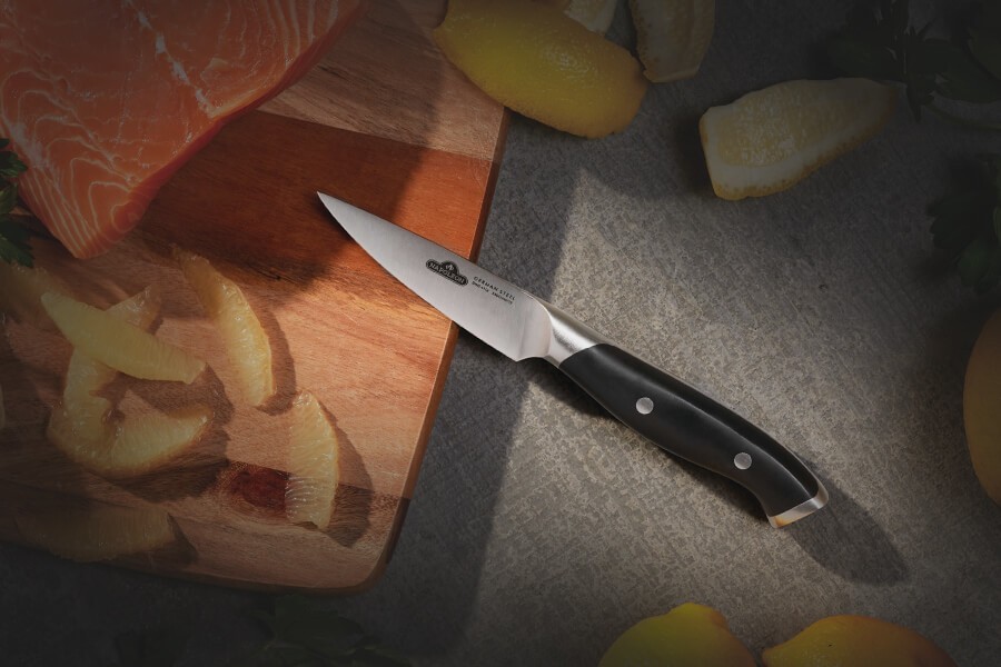 Menší nůž s čepelí z nerezové německé oceli, která prochází po celé délce nože, je perfektně vyvážený. Díky dvojině nýtované ergonomické rukojeti skvěle padne do ruky. Hodí se na loupání ovoce a zeleniny nebo vylupování krevet.